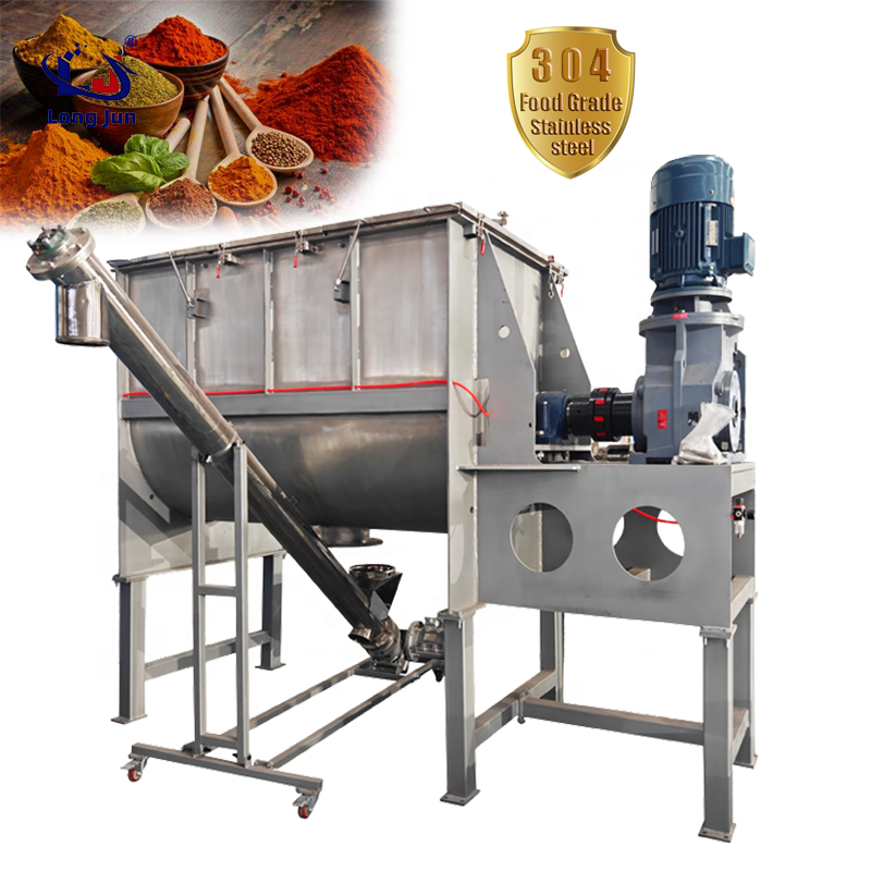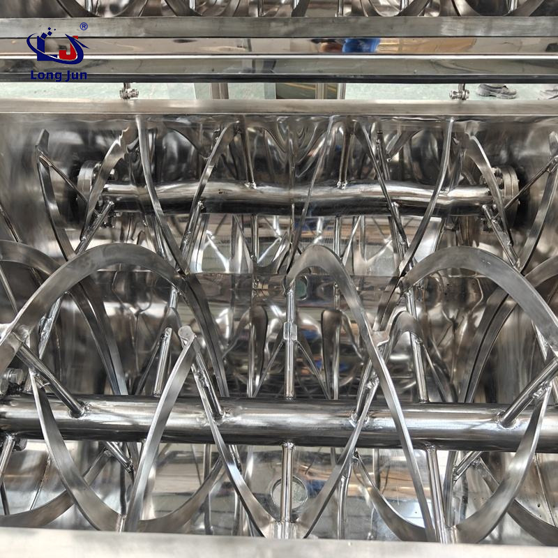 The working principle of the horizontal spiral belt mixer is to form vortices through the reverse rotation of the inner and outer double-layer (or three-layer) spiral belts. The outer spiral is used for centripetal aggregation, and the inner spiral is used for centrifugal conveying, achieving convective mixing. It has the characteristics of fast mixing speed and high uniformity.