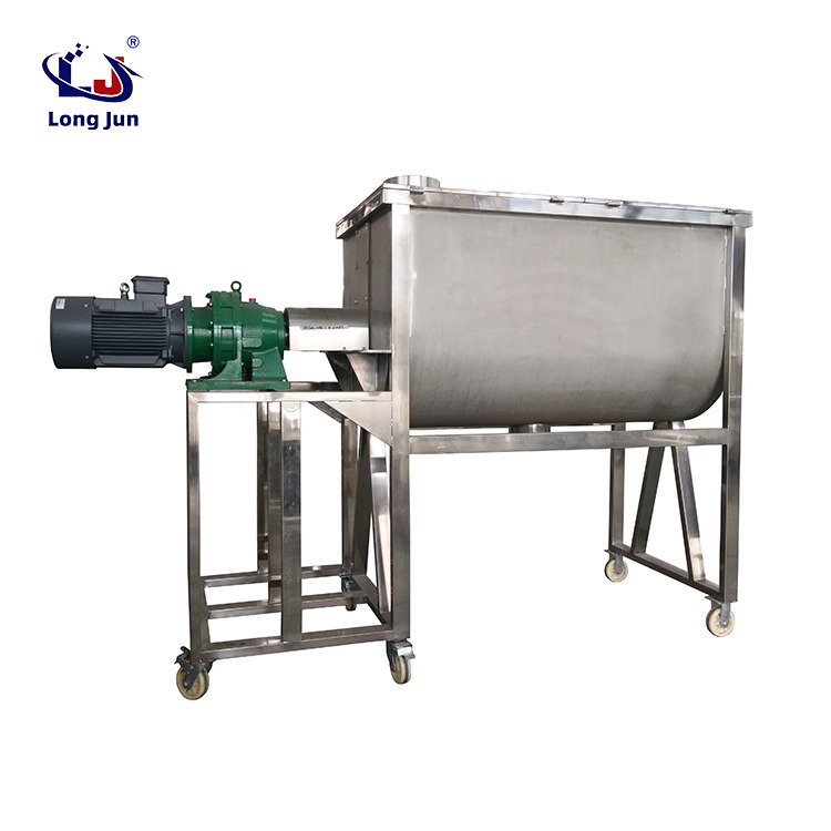 Operation process of double screw belt mixer: Before use, an air run test should be conducted. Before the test, the firmness of all connecting parts of the machine, the amount of lubricating oil in the reducer, and the integrity of the motor equipment should be checked. Then, the main power switch should be closed for air run test. It is advisable to immerse the slurry shaft during loading. After loading, the cover plate of the material tank must be closed before driving to prevent the material from flowing out of the tank. The cover is equipped with a sight glass basket to observe the mixing situation of the material