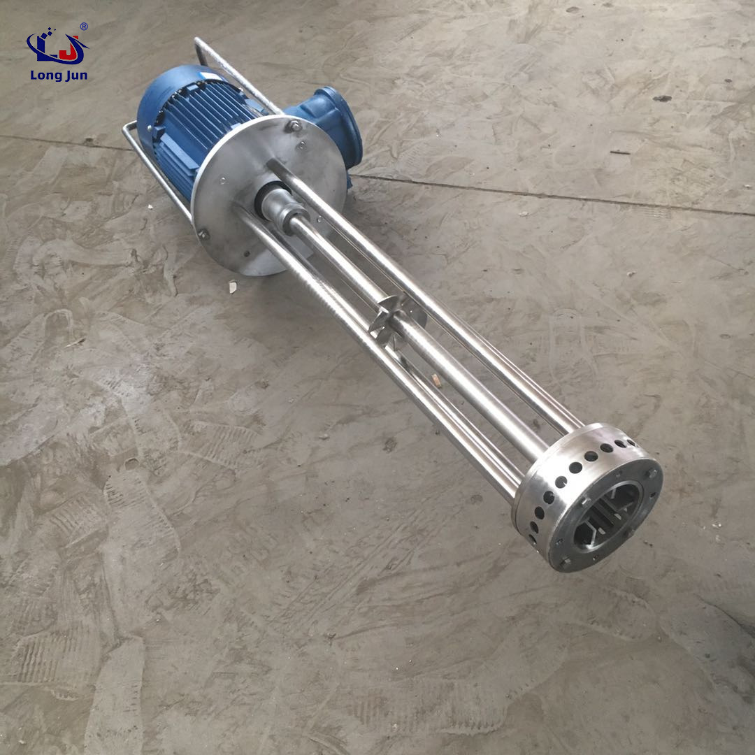 3. At the outer end of the high-speed rotating rotor, strong hydraulic shear, tearing and collision are formed to fully disperse, emulsify and crush the pigment slurry, and then it is ejected through the stator slot. The pigment slurry is continuously ejected at high speed in the radial direction, and under the action of the container wall, the direction of the pigment slurry changes, forming two upward and downward liquid flows that flow towards the upper and lower feeding areas of the working head. After several cycles, the dispersion and emulsification process is finally completed. In addition, considering the particularity of chemical processes, emulsifiers and dispersers can be equipped with devices such as variable frequency speed regulation, heating, cooling, pressurization, depressurization, and vacuum to achieve perfect mixing and emulsification effects.