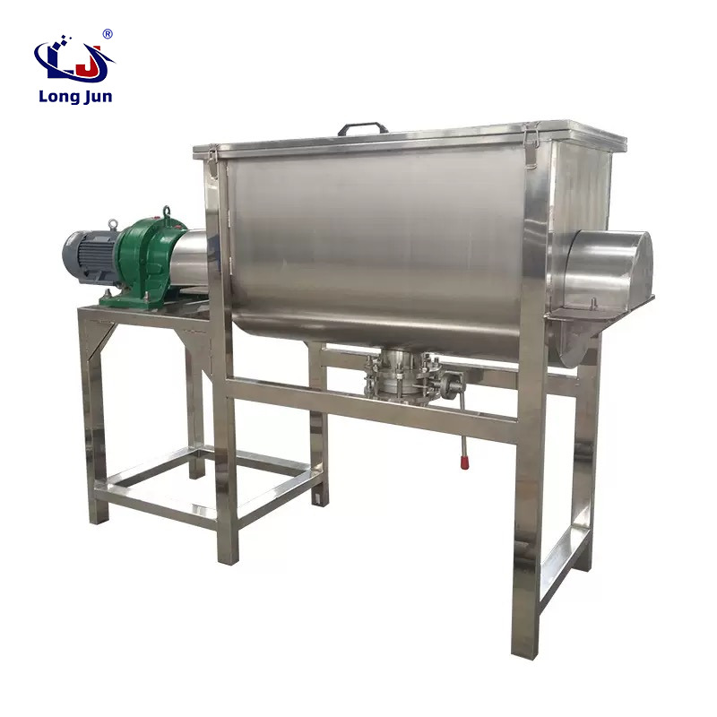 A horizontal mixer is an efficient equipment designed specifically for the uniform mixing of various particles, powders, flakes, and granules. This machine adopts a horizontal body and a spiral belt mixer, which has the advantages of small footprint, easy operation, simple maintenance, high uniformity, less residue, good sealing, no vibration, and less dust.
