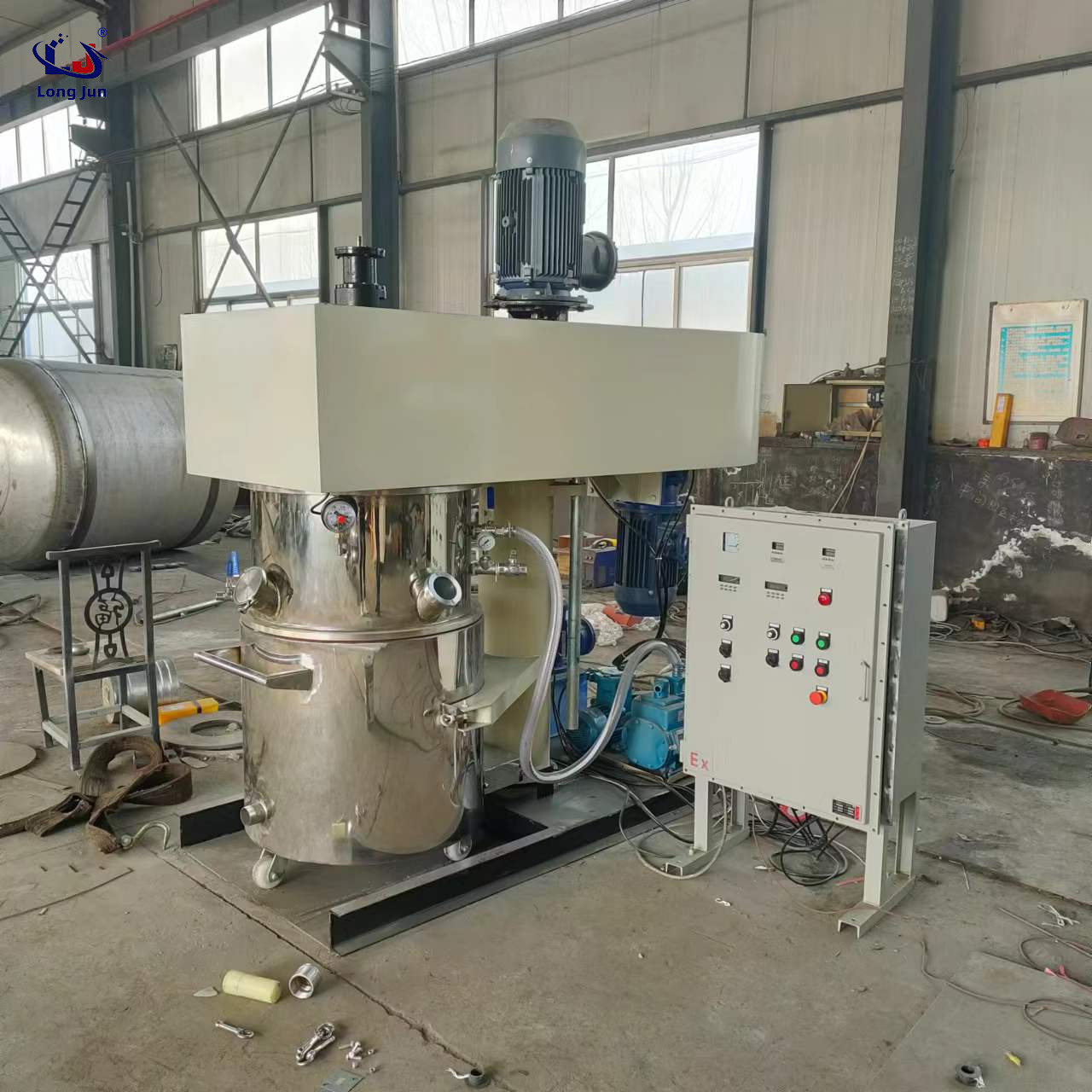 Longjun Machinery is a manufacturer of paste mixing and kneading equipment. For decades, our company has been dedicated to the development, design, and manufacturing of a series of dual planetary mixers, dual planetary power mixers, multifunctional mixing mixers, strong dispersing mixers, and various lifting press feeders made of stainless steel and carbon steel materials; According to different operating conditions, there are different heating forms available for you to choose from, such as electric heating and thermal oil heating.